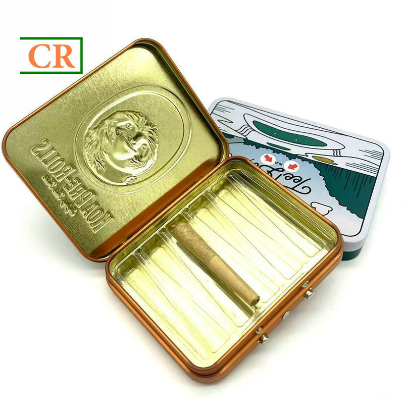 There is no limit for artwork printing because of the shorter height and regular tinplate material. Usually, most of cusomers apply matte finish with embossing on tin or few customers applies laminated tinplate or soft tin - rubber oil tin to build a unique high-end brand for their pre-rolls, edibles. For regular customers, our suggestion is making metallic gold for logo matched embossing with glossy finish and rest of background with matte finish so that logo area will be shine.